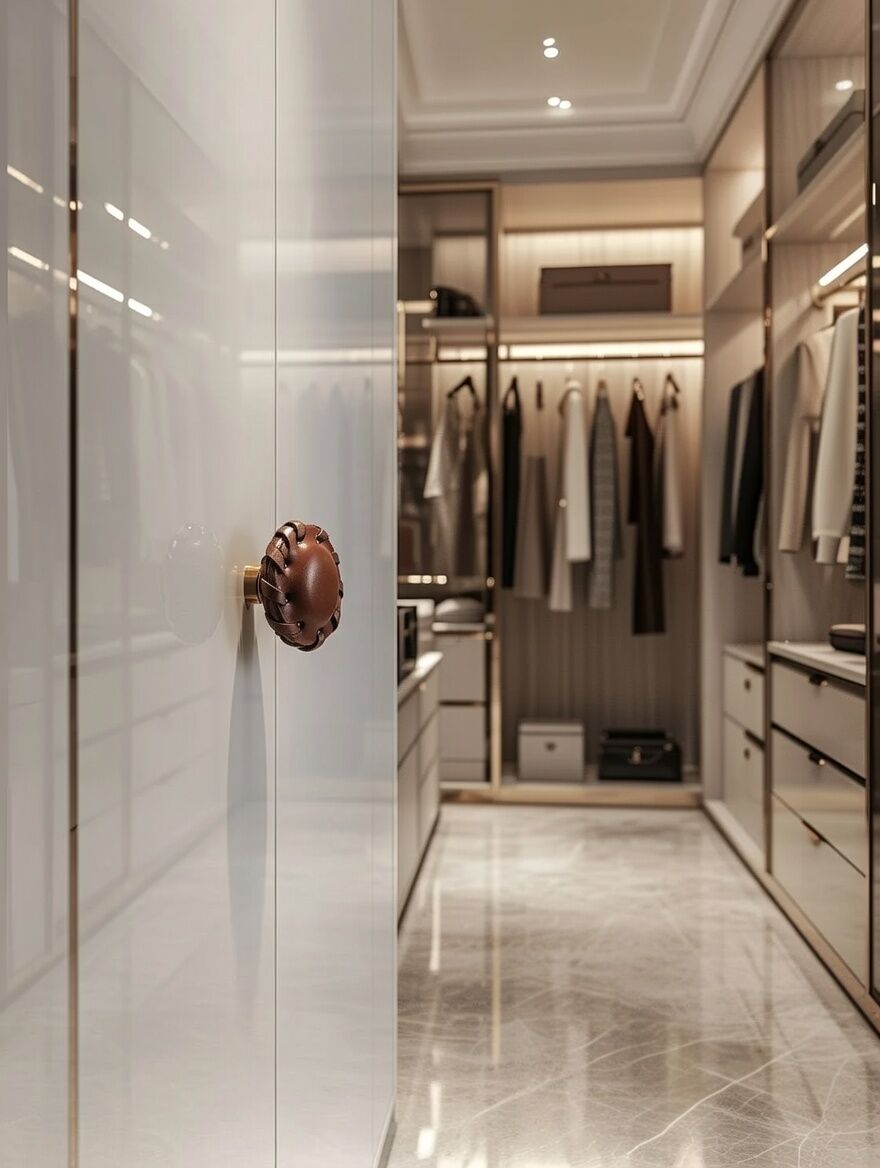 Doğal derinin yumuşak dokusu ve elde yapılan dikişleri, ürünü yalnızca fonksiyonel bir kulp olmaktan çıkarır; dekoratif bir tasarım unsuruna dönüştürür. Zamanla oluşan doğal patina, her kulbun kendine özgü bir karakter kazanmasını sağlar.