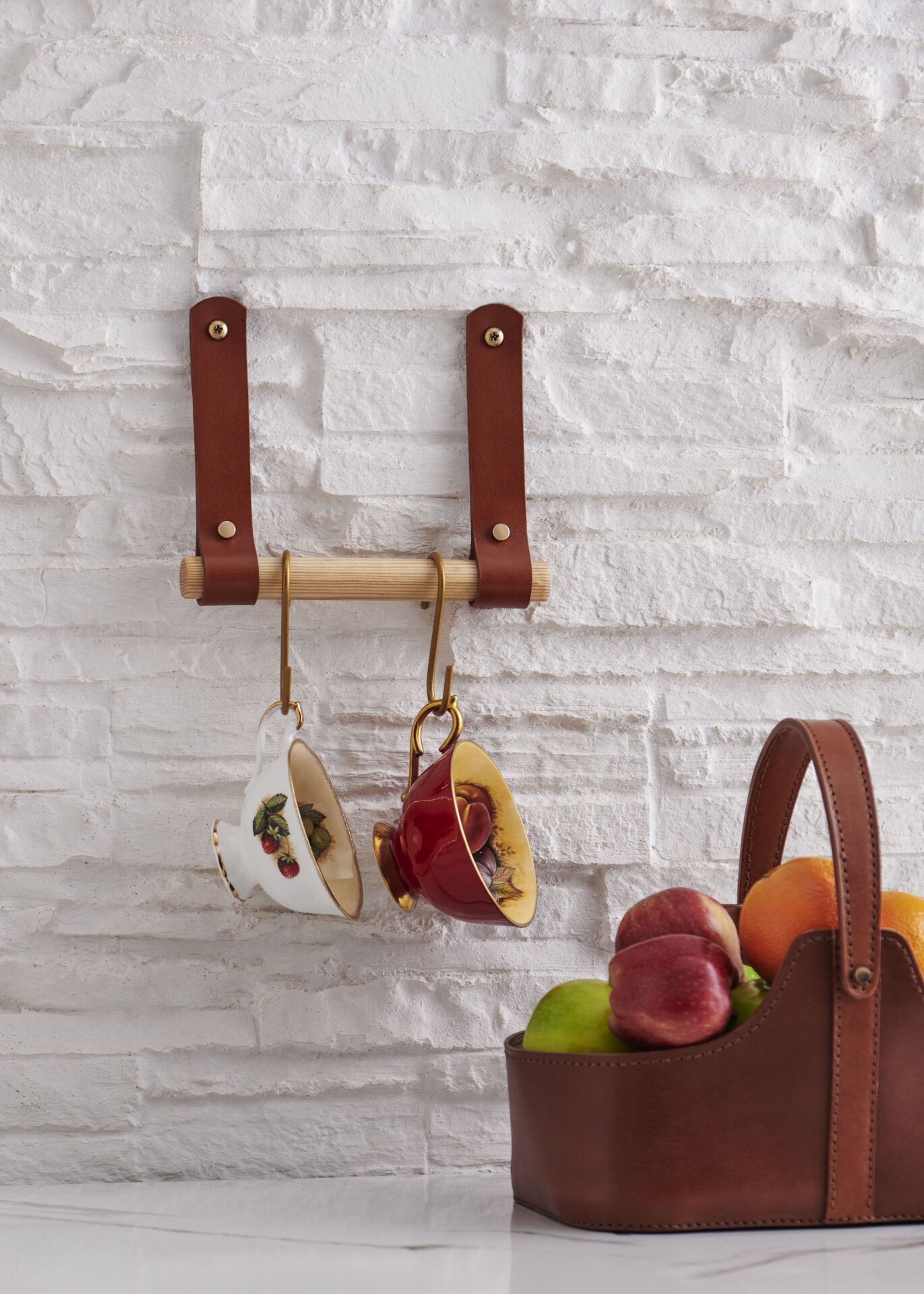 Handcrafted Genuine Leather Cup Holder, fincanlarınızı düzenli, güvenli ve estetik bir şekilde sergilemek için tasarlanmış zamansız bir mutfak aksesuarıdır. %100 gerçek deriden ve tamamen el işçiliğiyle üretilen bu özel tasarım, fonksiyonelliği doğal şıklıkla buluşturur.