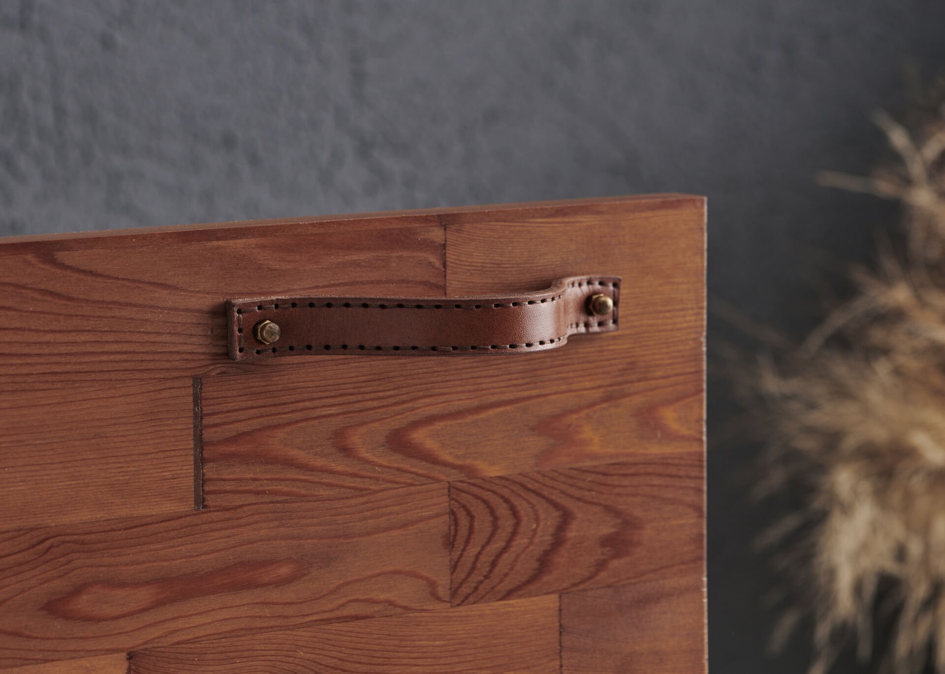 Dolap, çekmece ve kapaklarda kullanılan deri kulplar, doğal malzemenin sıcak dokusu sayesinde mekâna sofistike ve dengeli bir görünüm kazandırır. El yapımı üretim süreci nedeniyle her kulp kendine özgüdür; kullanıldıkça deri doğal bir patina geliştirir ve ürün daha karakterli bir görünüm kazanır.
