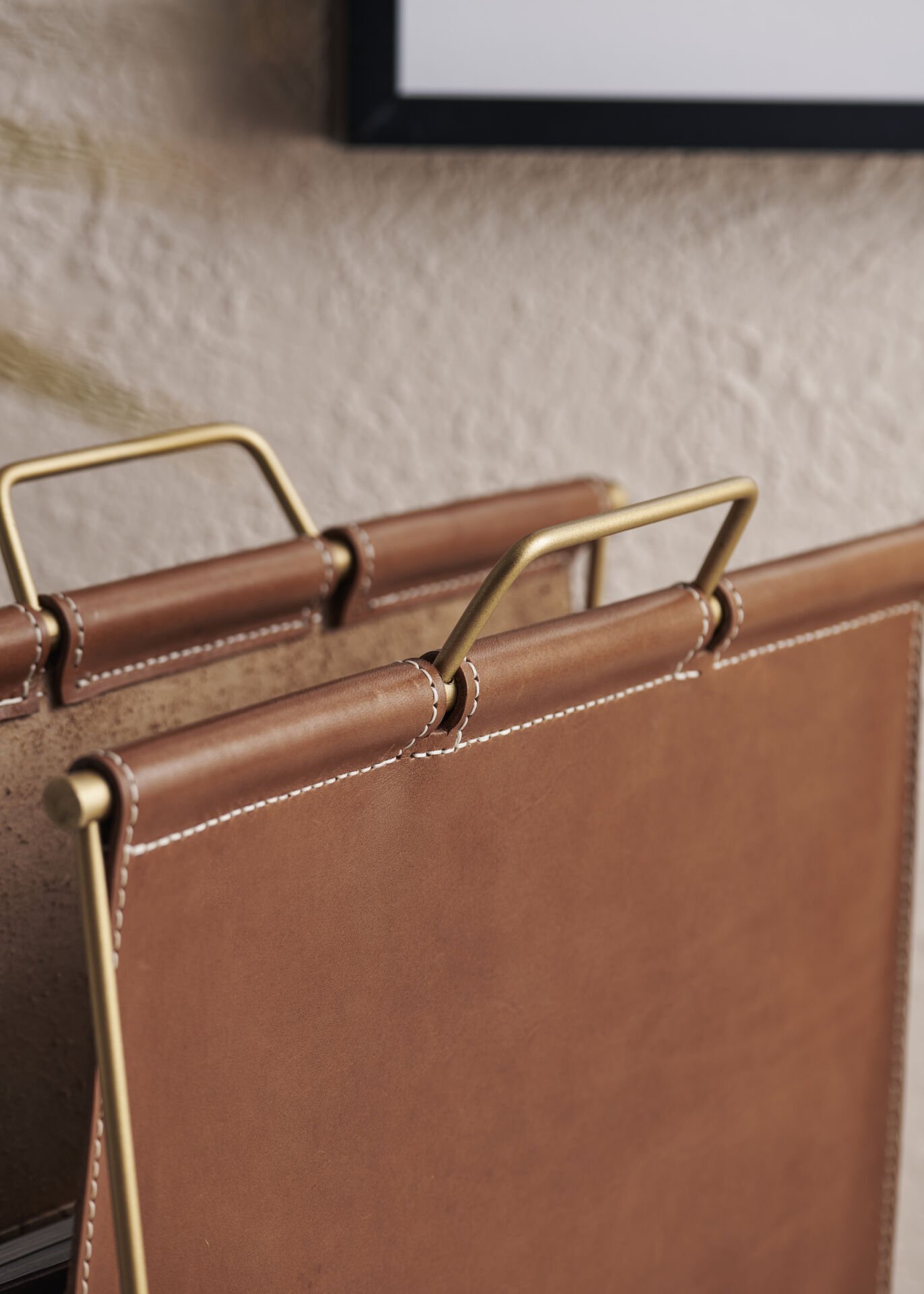 Handcrafted Genuine Leather Magazine Holder, şıklık ve düzeni bir araya getiren zamansız bir tasarım anlayışıyla üretilmiştir. %100 gerçek deriden ve tamamen el işçiliğiyle hazırlanan bu özel dergilik; dergi, gazete ve kitaplarınızı düzenli bir şekilde saklarken yaşam alanlarınıza sofistike bir karakter kazandırır.